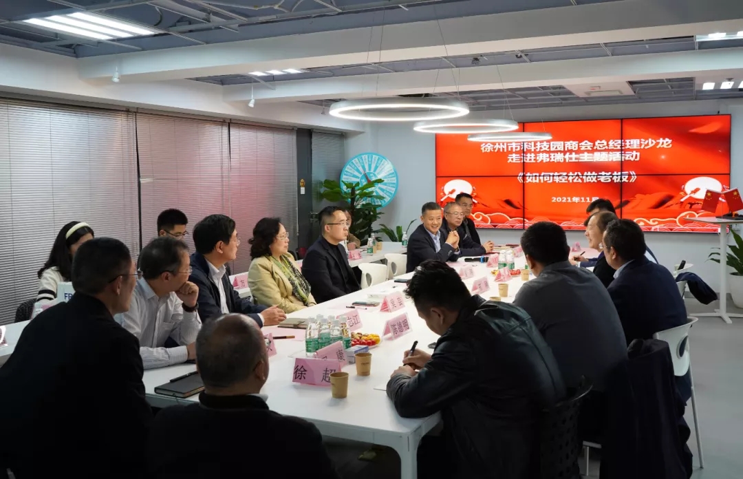 2021年11月4日,徐州市科技园商会总经理沙龙走进弗瑞仕主题活动在江苏弗瑞仕环保科技有限公司会议室圆满举行。商会走进企业总经理沙龙活动是自商会成立以来一直持续举办的活动,通过走进成员企业,给彼此提供结识的宝贵机会,增加商会的凝聚力。非常荣幸本次活动在弗瑞仕公司举行,江苏弗瑞仕环保科技有限公司董事长张建国主持本次活动。商会成员齐聚弗瑞仕,就《商业模式定制》等话题进行探讨。